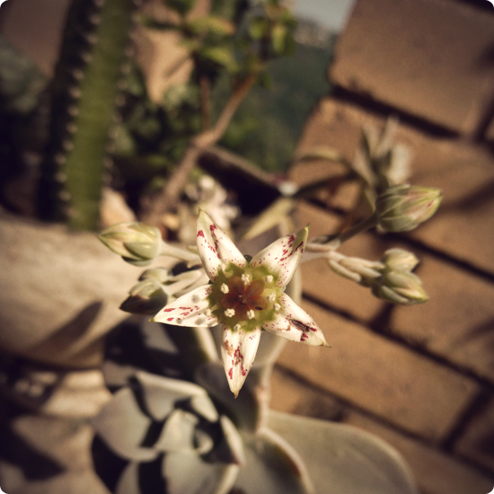 Not sure what this plant is called, but I’m going to call it the Cactus Rose, coz that’s what it looks like. Quite a kiff plant overall… not fussy, not too flowery, subtle, chilled, happy pretty much all the time… (i.e. I don’t have to do a thing to keep it alive) and the one in my balcony is flowering 🙂