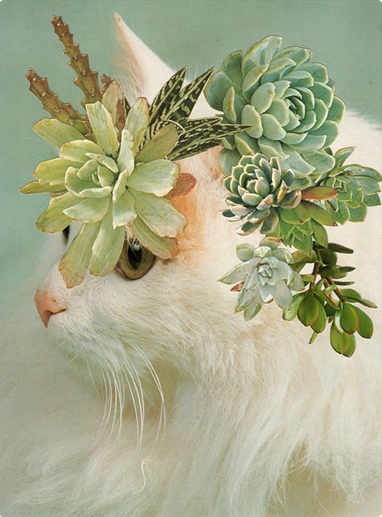 “The plants and animal series started as an inside joke and was born from a happy accident combining the cat imagery and foliage from my other work (basically two of my favorite things). I would only show the collages to friends that would come by the studio and kept them a secret but was eventually coerced into putting them online.”