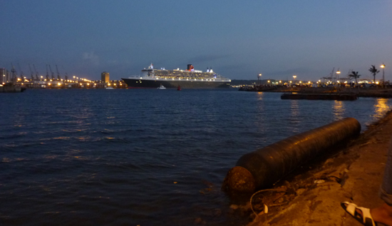 These pics are somewhat delayed, considering Her Majesty, Queen Mary ||, departed some 2 weeks ago. Also, the pics of the actual ship mostly look like I took a massive snort of coke before I shot them, but I like them anyway.