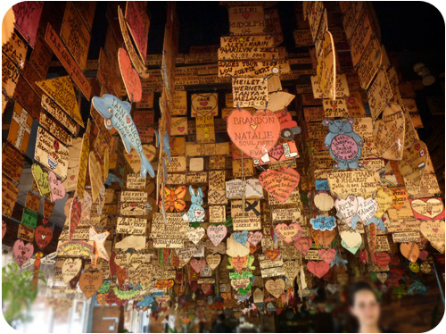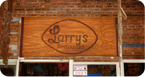 There’s this awesome little restaurant at the main Margate beach called Larry’s. The ceiling, walls and even furniture are covered by these wooden signs! They’re all personal messages from people who have eaten there over the years. It’s so freakin’ cool, what a great idea! It was started over 15 years ago: the messages are burnt onto wood panels and there are now over 12 000 of them!